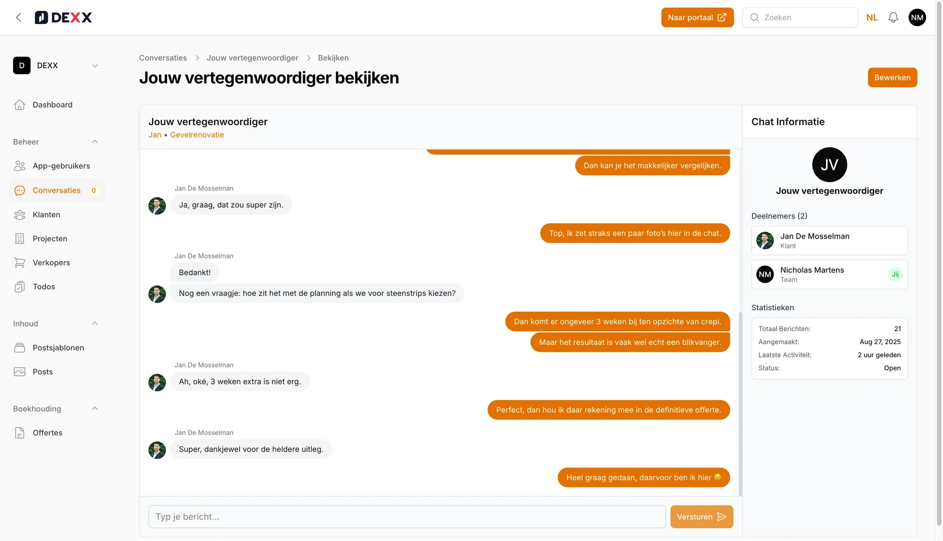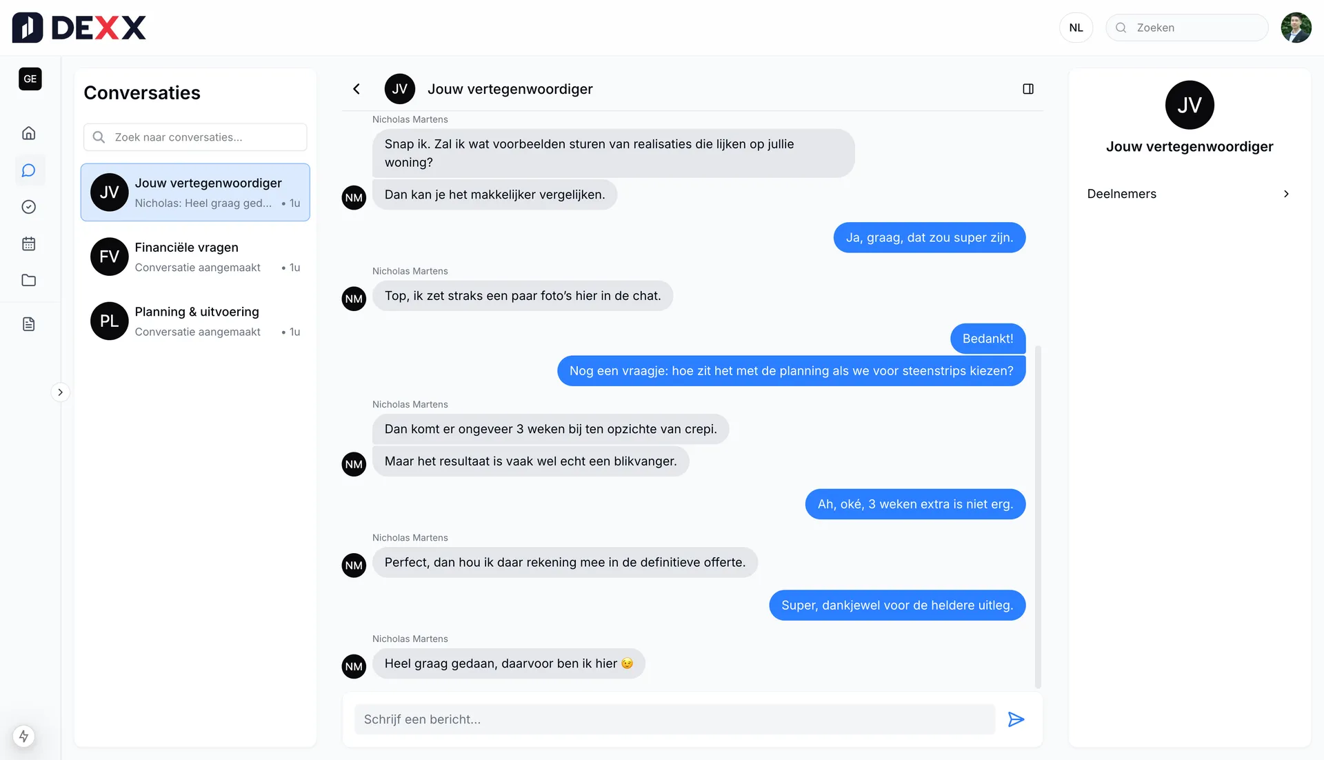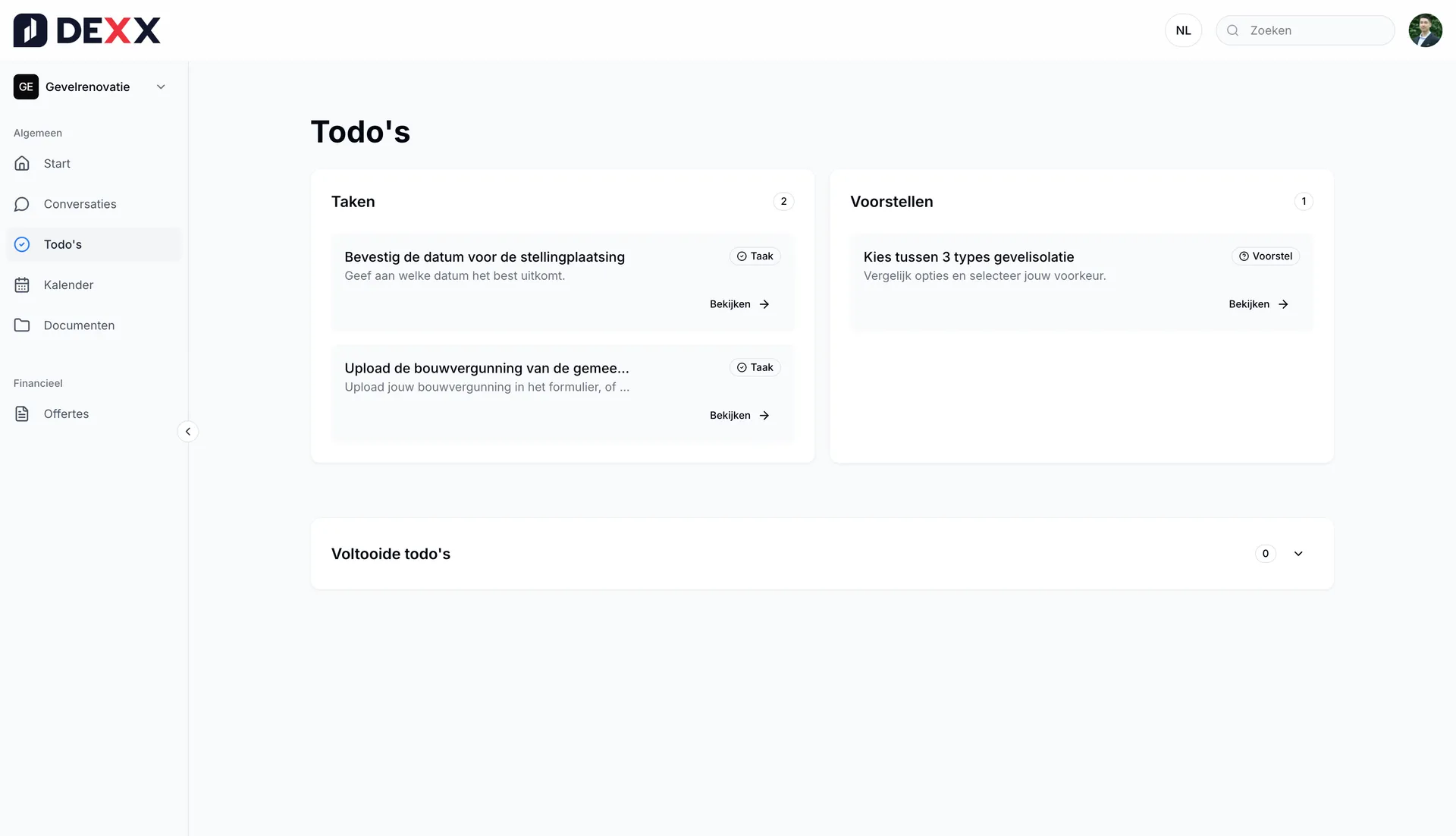 DEXX is een digitaal klantenportaal dat jouw volledige traject ondersteunt - van de eerste offerte tot de oplevering en nazorg. Het maakt communicatie helder, verhoogt conversie en geeft je klanten rust en vertrouwen.
