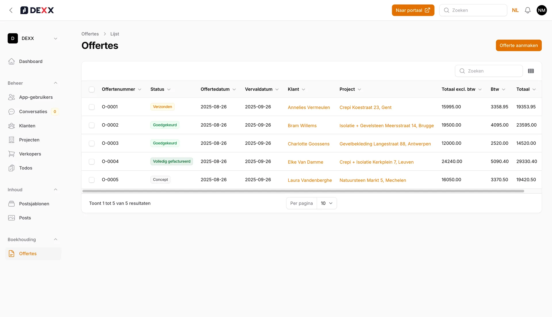DEXX geeft je klanten één duidelijk portaal waar ze offertes, planning en voortgang opvolgen - zonder misverstanden of onzekerheid.